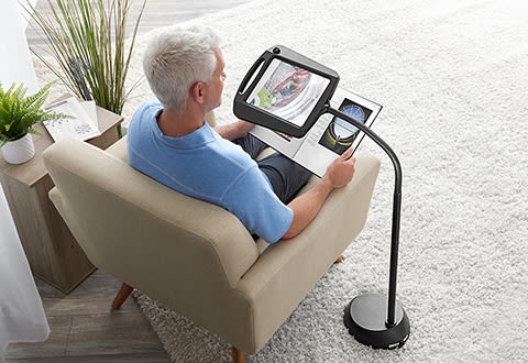 The ideal reading conditions are created by the huge 20.3cm x 25.4cm viewing lens with 3X magnification and 12 cool-touch LEDs that mimic natural daylight.