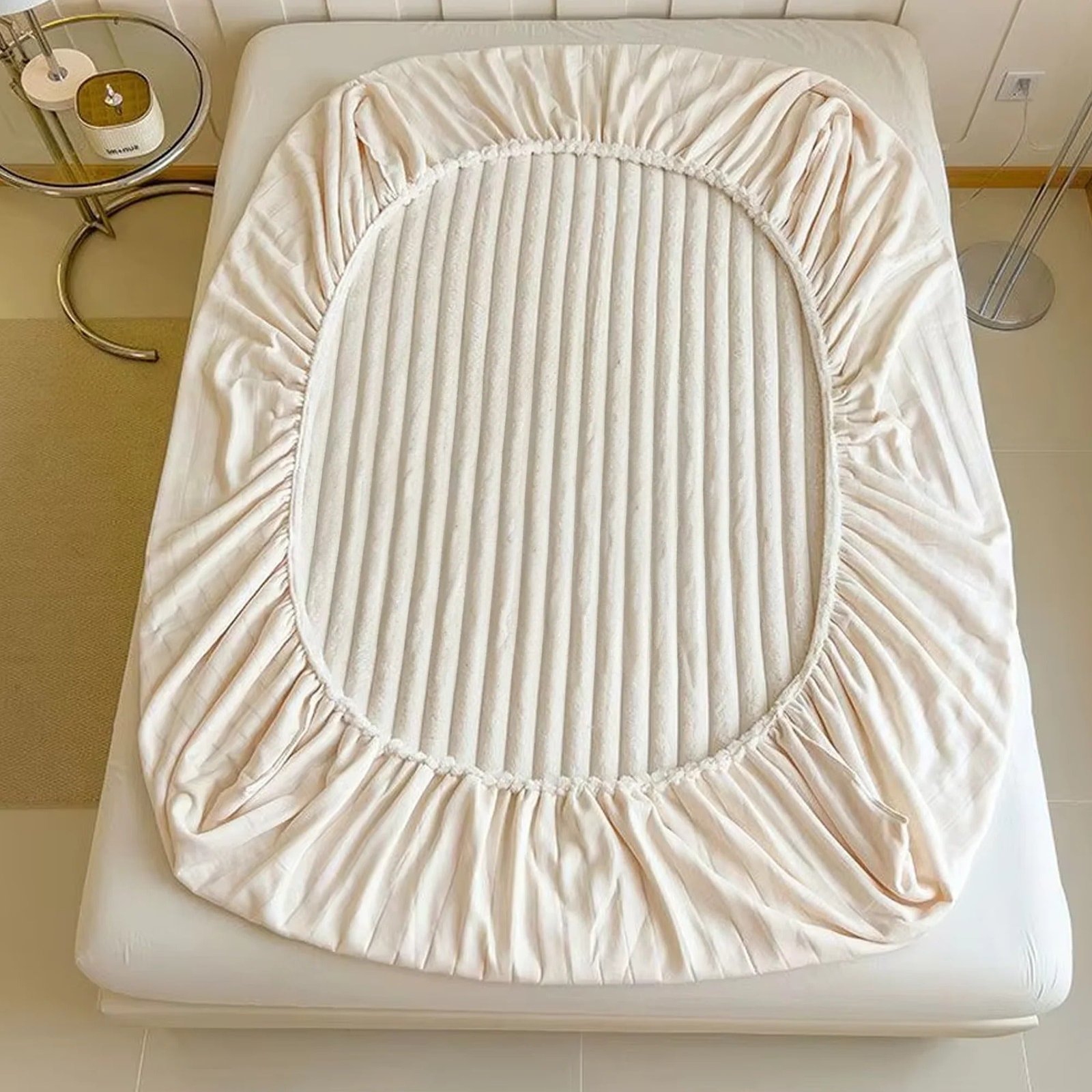 Use our incredibly soft fitted bed linens to improve your quality of sleep. designed to give any bedroom a little more comfort and flair. In addition to providing a comfortable feel, the plush ribbed texture guarantees uniform weight distribution and relieves pressure spots. Perfect for anyone wishing to add coziness and warmth to their sleeping area.