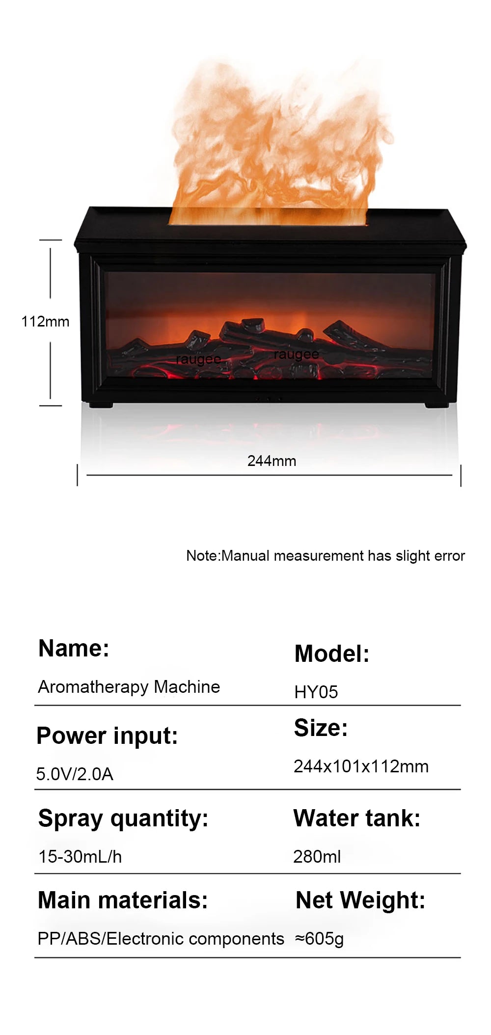 【Sleek Decor, Smart Design】With a compact modern silhouette (244x101x112mm) and premium ABS+PP, this raugee diffuser blends into your space like decor. It’s not just a humidifier—it’s an elegant upgrade for your home or office that works as beautifully as it looks.
