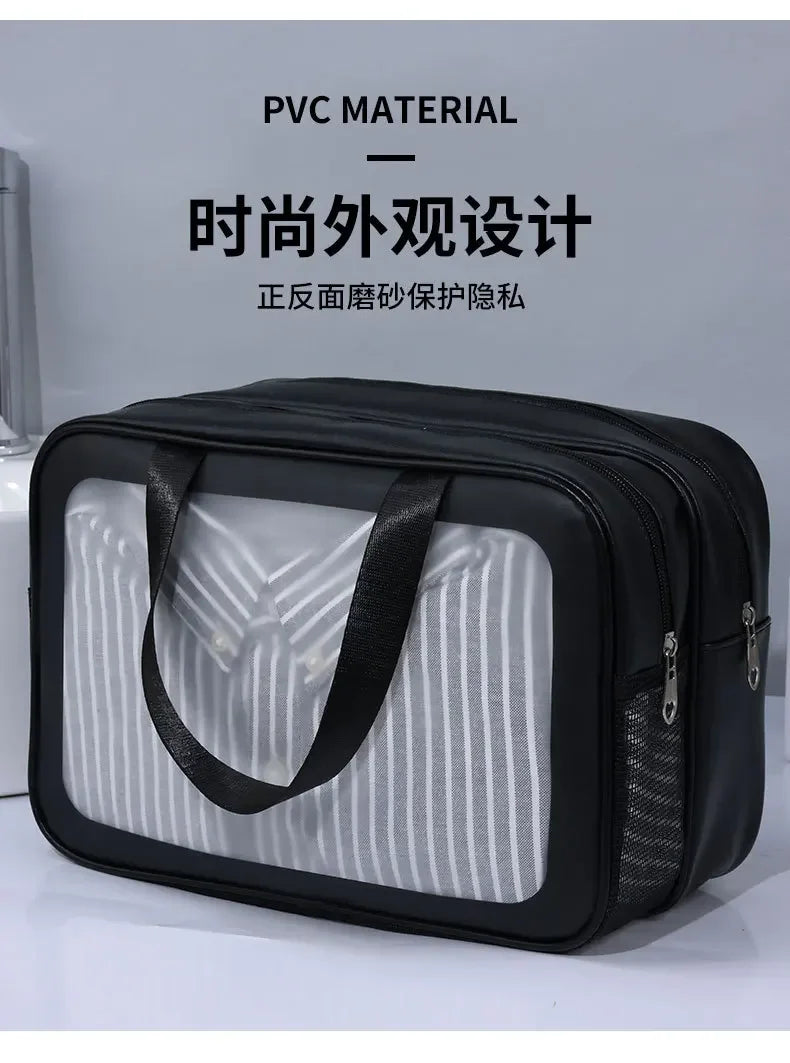 Dry-wet separation double transparent PU makeup bag portable washing bag cosmetic storage bag travel fitness swimming essentials