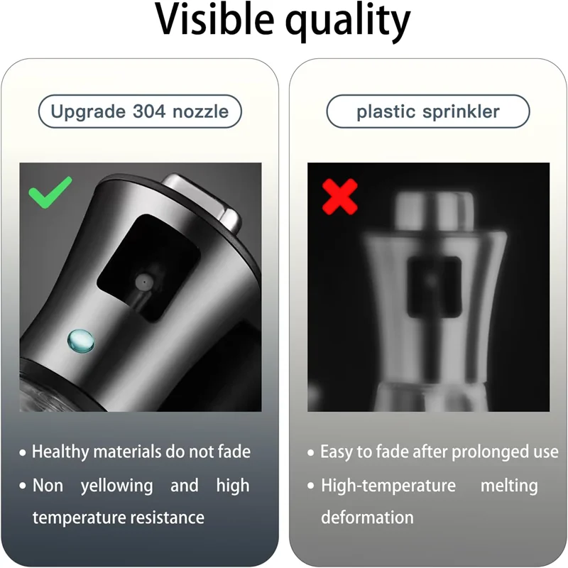 Newly designed oil spraye,The air fryer's oil sprayer is made of inline nozzle, no dirty bottle mouth to prevent dust pollution, sealed threads, no oil leakage, 60° high atomization even spray, finer spray, more even oil on food, control oil volume and reduce heat.